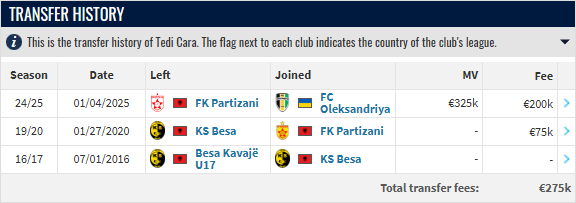 Цара приєднався до Олександрії в січні 2025 року з албанського колективу Партизані за 200 тисяч євро. У минулому сезоні він встиг провести 13 ігор за Олександрію в УПЛ, забив шість голів і віддав три асисти.